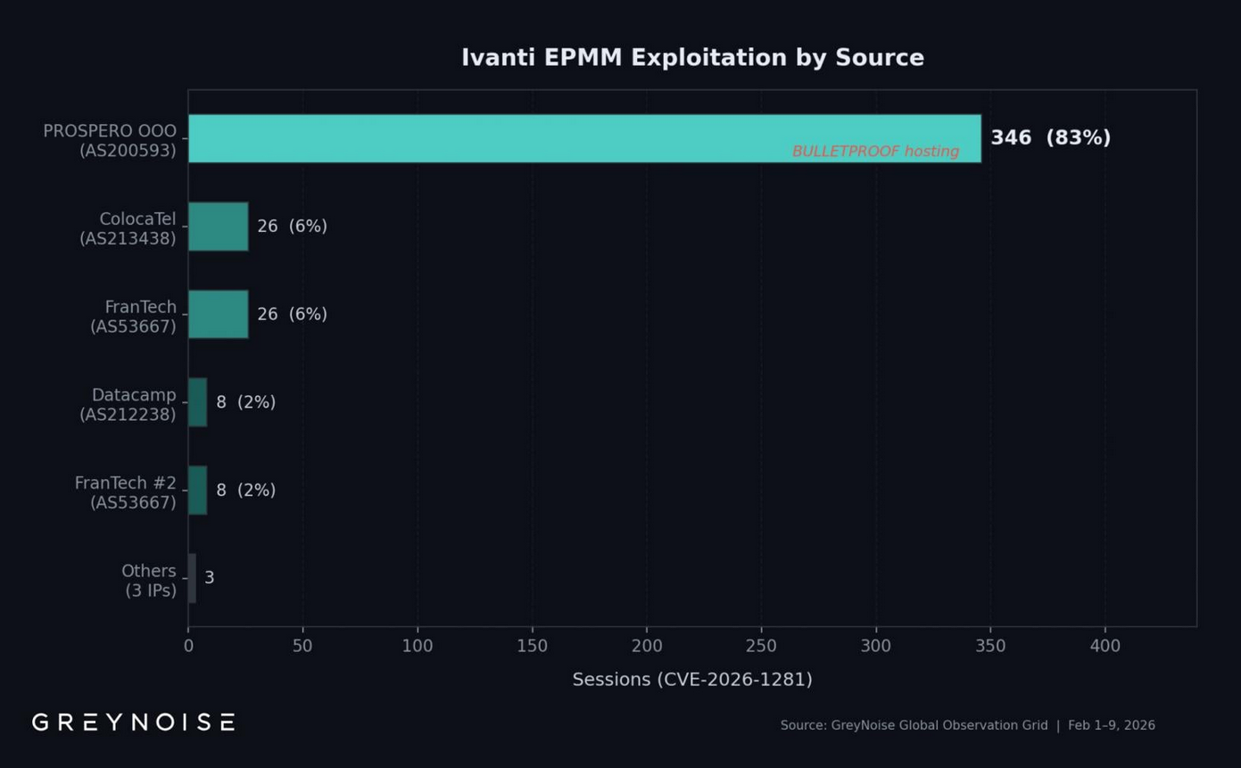 По данным анализа угроз, один злоумышленник ответственен за большинство активных атак, использующих две критические уязвимости в Ivanti Endpoint Manager Mobile (EPMM), отслеживаемые как CVE-2026-21962 и CVE-2026-24061.