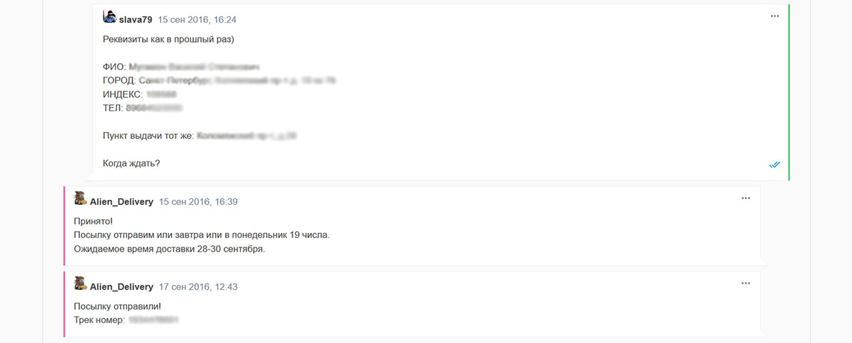 — После отправки заказа всегда выдаем трек-номер для отслеживания посылки через сайт ТК или почты